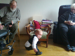 Bij opa en oma. Slagroom en een trappelstoel. Wat ...